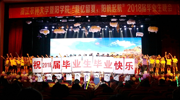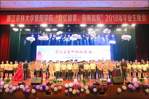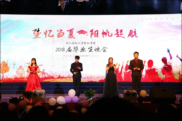本网讯 6月20日晚,“暨忆留夏,阳帆起航”——学院2018届毕业生晚会在活动中心影剧院举行。学院领导石道金、潘国忠、李文莉、吴正金、高国俊出席晚会,为2018届毕业生送上真挚祝福。