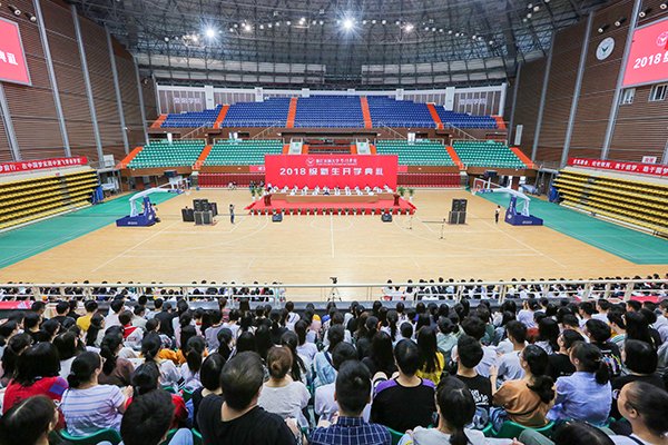 本网讯 时维九月,序属三秋。9月11日上午,必赢766net手机版2018级新生开学典礼在篮球馆隆重举行。
