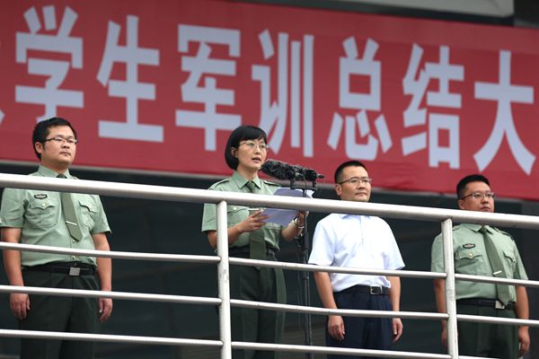 学院副院长、军训团团长李叔君在大会上发表讲话。她衷心的希望同学们铭记这段艰辛的军训历程,把军训这种饱满的热情、顽强毅力、必胜信心带到学习、工作和生活中去,充分发扬“求真敬业,经世致用”的学院精神,把军训成果转化为优良的学风、校风,学会担当,不断进取,不断开创美好的未来。