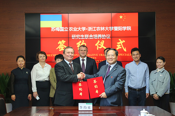 石道金与Mykola Sokolov共同签署了学院与苏梅国立农业大学研究生联合培养协议。根据协议,双方将共同开展“3+1+1.5”、“4+1.5”、MBA、博士研究生等人才联合培养项目。与会人员回顾了今年双方学校互派师生短期交流的精彩瞬间。