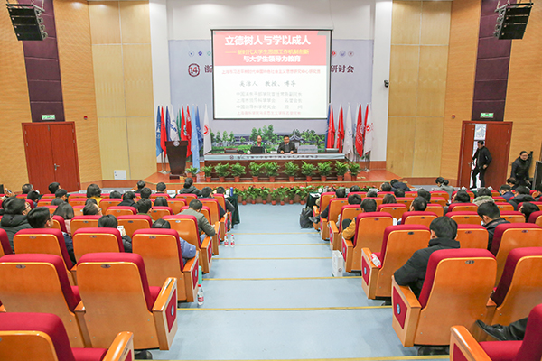 本次研讨会为期2天,会上,中国浦东干部学院首任常务副院长、上海市领导科学学会名誉会长奚洁人教授作了“立德树人与学以成人—新时代大学生思想工作机制创新与大学生领导力教育”的主题报告,围绕高校的使命、大学的根本任务和大学生领导力教育的内涵展开,突出大学生领导力的培养的重要性和必要性;浙江农林大学林业与生物技术学院党委书记孙勤龙作为教育部首批“三全育人”综合改革试点单位代表分享了“构建‘三全育人’工作体系,培养新时代‘红绿’人才”的做法;上海建桥学院学工部部长陈伟分享了上海思想政治教育的实践创新。