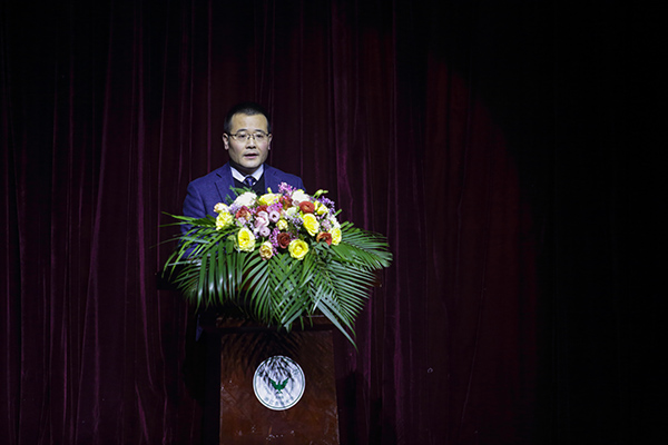 学院党委书记潘国忠致新年贺词。他代表学院向全院师生员工,以及所有关心、支持学院事业发展的广大校友、各界朋友,致以诚挚的问候和新年的祝福。他深情回顾了2018年学院在党建思政工作、综合保障能力、人才培养质量、社会合作工作、科学研究水平、师资队伍建设等方面取得的新成绩,并希望全院师生员工继续发扬“求真敬业、经世致用”院训,在新的一年里,不忘初心、勇担使命、拥抱新时代、领略新气象、凝聚新力量、踏上新征程、做出新贡献!