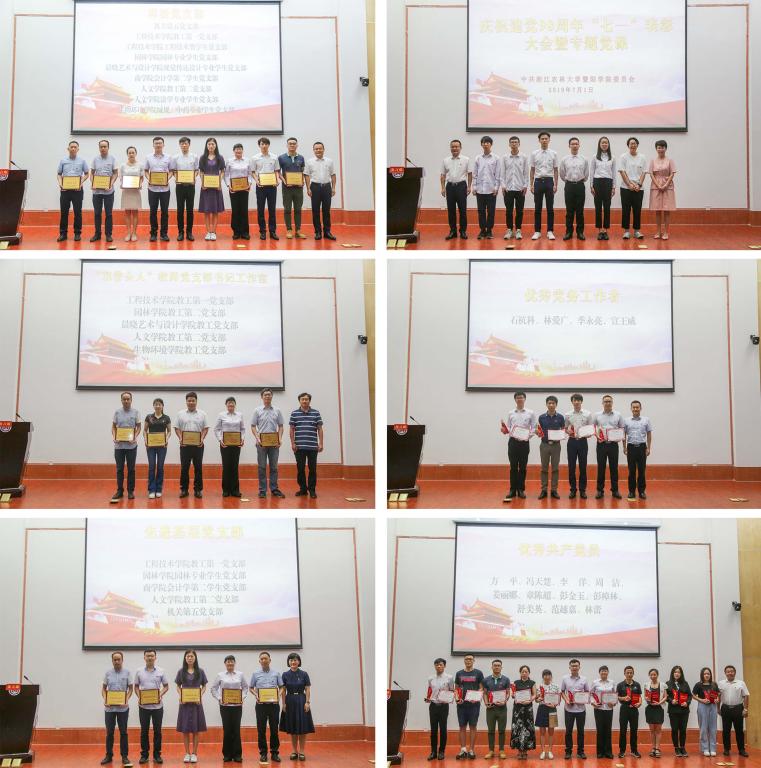 会议对学院5个先进基层党支部、9名优秀共产党员、4名优秀党务工作者、9个样板党支部、5个“双带头人”教师党支部书记工作室进行了表彰。