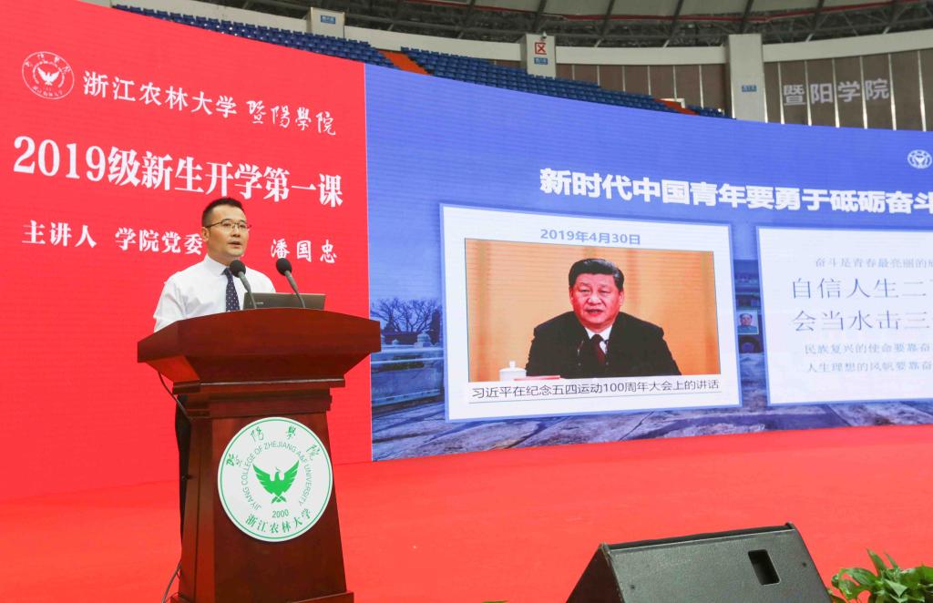 潘国忠以习近平在纪念五四运动100周年大会上的讲话切入,从“青春的中国正在奋斗”“青春的暨阳正在奋斗”“奋斗吧!暨阳少年”三个方面展开,与同学们讲述了何为中国自信、教育自信、青年自信;用生动详实的事例和质朴真挚的感悟,回望了浙江农林大学和必赢766net手机版的发展历程;以“大学文化内核”和“时代责任担当”为核心,教导全体新生如何把握大学时光、不断超越自我。