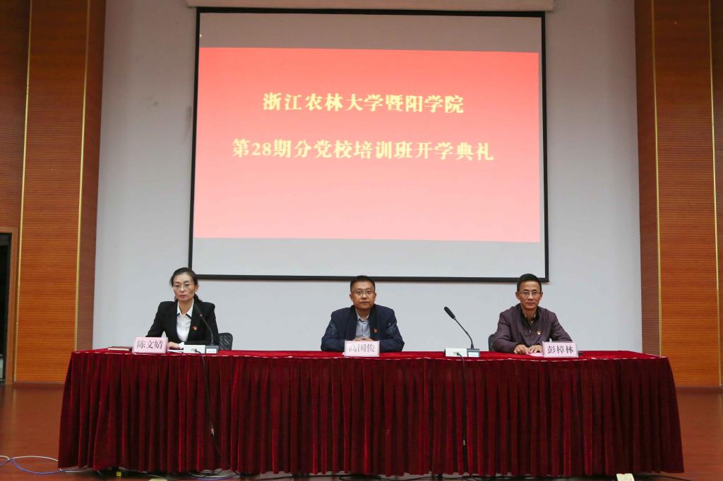 11月7日晚,学院分党校第28期培训班开学典礼在明珠报告厅举行。院党委副书记高国俊,院党委委员、工程技术学院院长彭樟林,各党总支书记出席开学典礼。会议由组织人事部主任陈文婧主持。