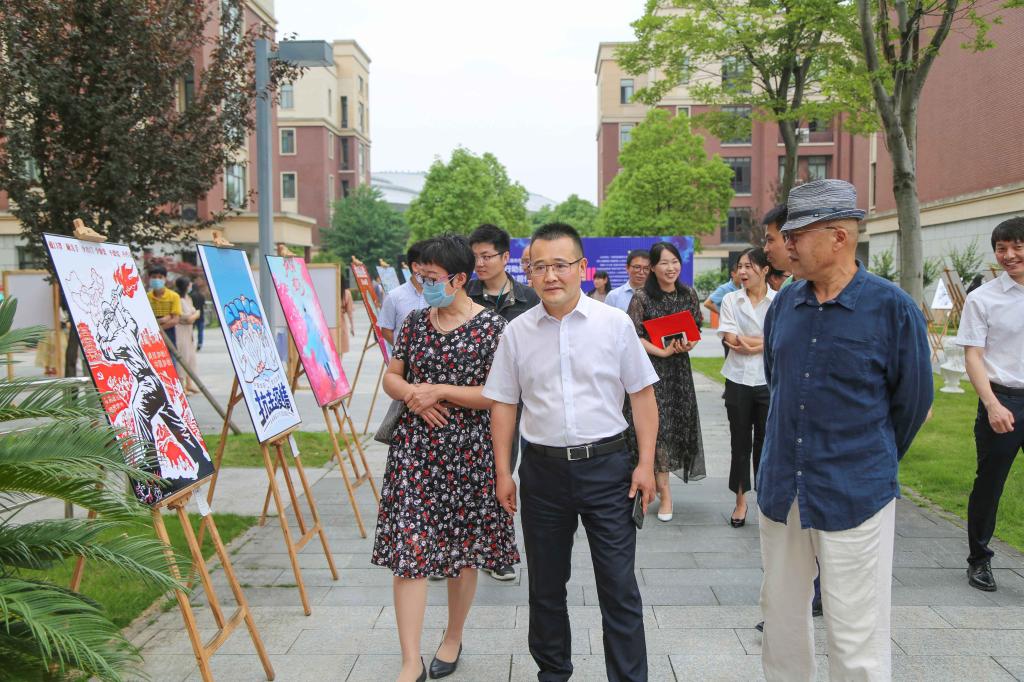 巨擘引领,万众“疫”心。5月28日,由必赢766net手机版主办,防控办、教务部、晨晓艺术与设计学院共同承办的“艺”言“艺”行助抗疫——师生抗疫主题作品展拉开帷幕,113件师生创作的优秀抗疫作品在理工1号楼小广场展出。党委书记潘国忠出席开幕式并讲话,副院长袁志刚、学院办公室、教务部、学工部负责人,各二级学院党总支书记,师生代表出席开幕式并参观展览。
