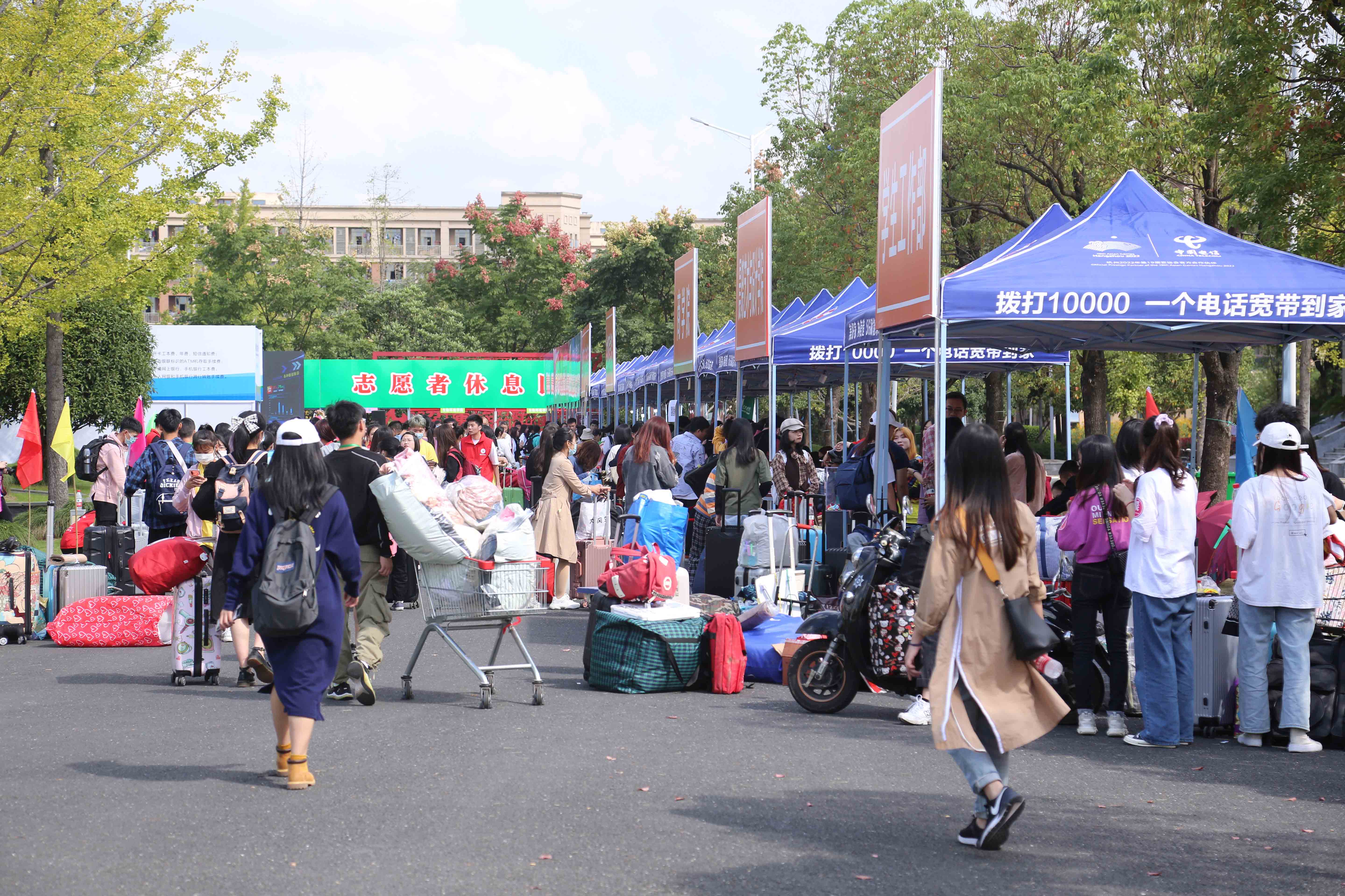 为确保新生报到工作顺利开展,学院开设绿色通道、医疗服务点、休息区、迎新校内循环专用车、手推车等功能区块为新生和家长提供细致服务。