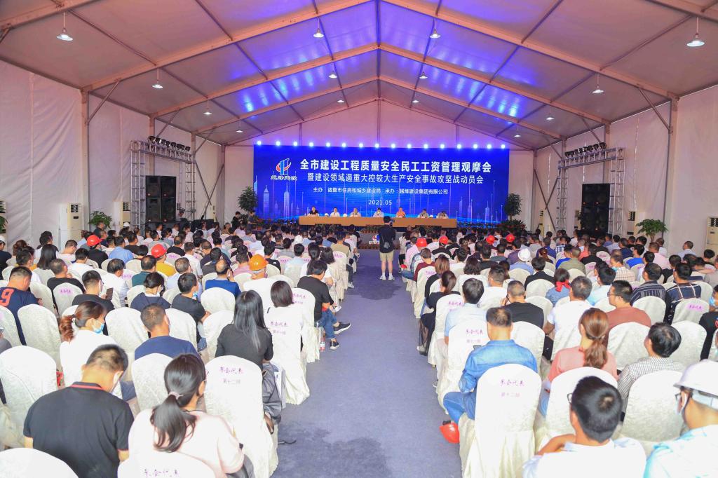 5月21日,诸暨市建设工程质量安全和民工工资管理观摩会在必赢官网召开。院长徐光辉、公保部负责人,市建设局、越烽建设、市建筑市场相关负责人,全市在建工地的建设单位、监理单位及施工单位负责人共300余人齐聚“优秀工程项目”——必赢766net手机版新建学生公寓项目工程现场。