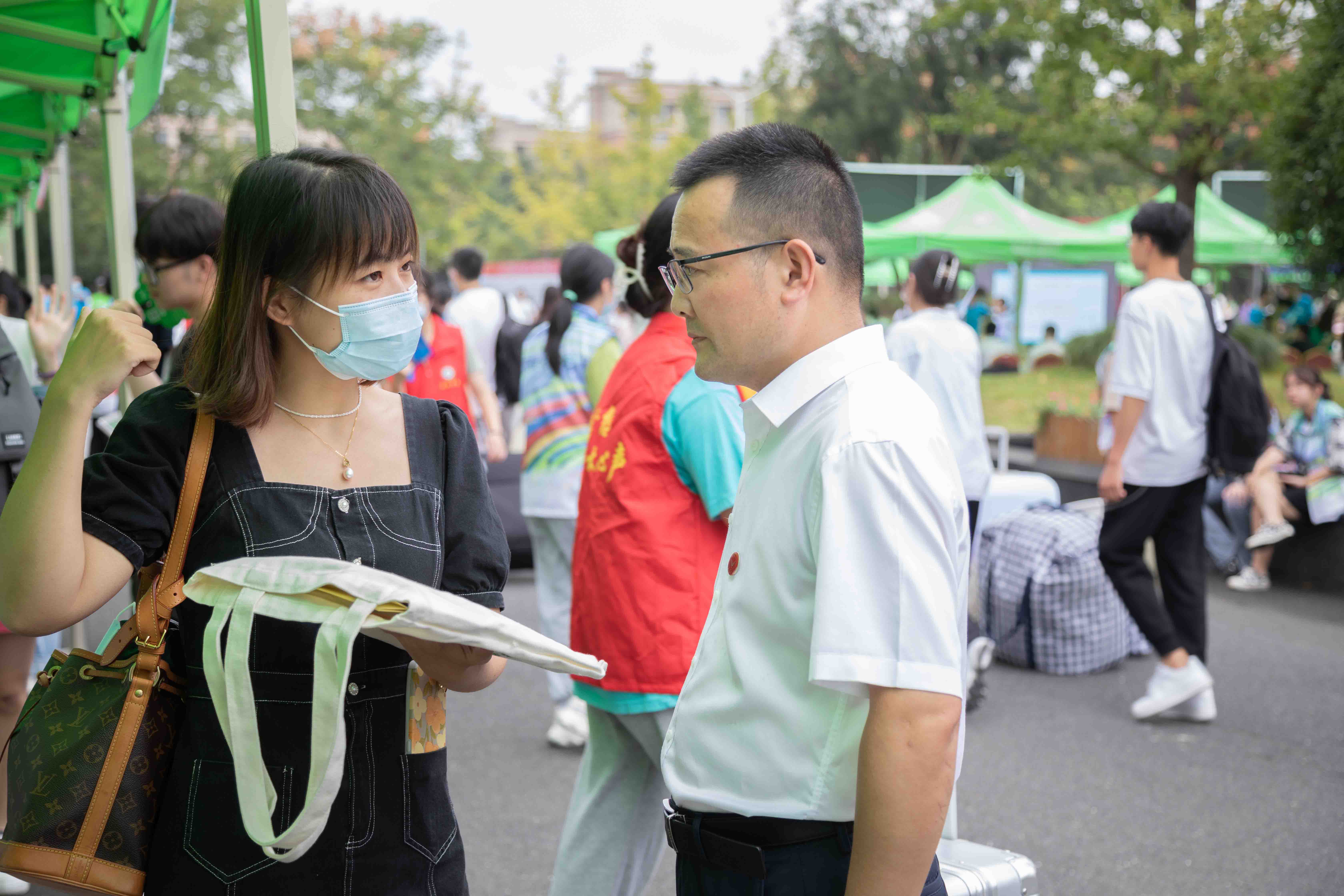 院长徐光辉、党委书记潘国忠一行来到新生报到现场,检查指导迎新工作,慰问工作人员与志愿者,并与新生进行亲切交谈。下午,学院领导陆续前往各二级学院新生寝室走访看望2021级新生,认真了解新生的生活情况,关心问候新生报道后的感受,并勉励同学们尽快适应大学生活,珍惜青春时光,做好人生规划,在暨阳开启新的奋斗历程。