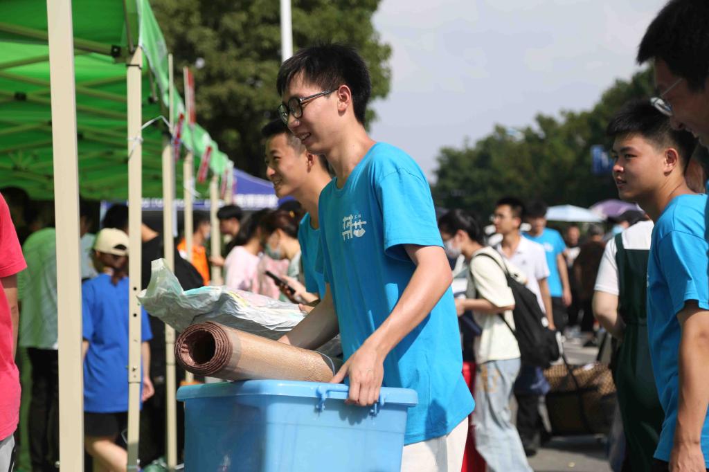晨曦初露,迎新志愿者在高铁站、校门口迎接新同学,为新生送上了来自暨阳的第一份温暖。