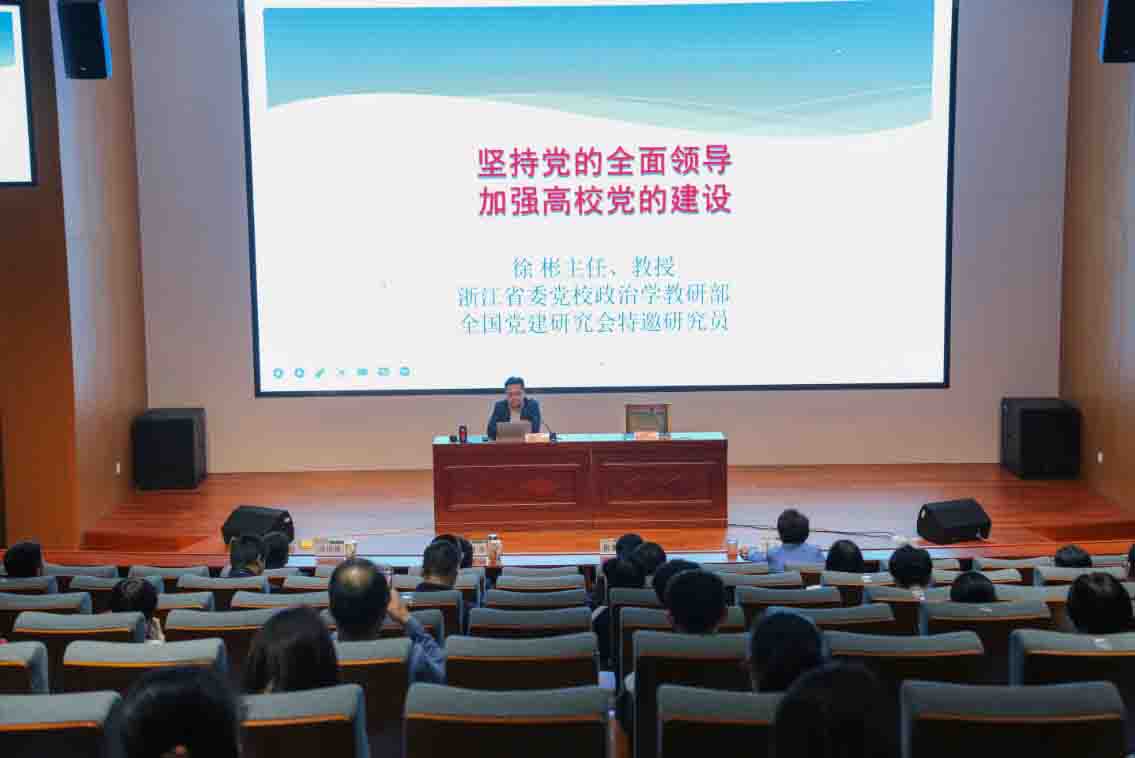 为全面贯彻落实习近平总书记关于加强高校党建工作的重要论述精神,积极响应和推进全省“红色根脉强基工程”,进一步加强干部队伍建设和深化基层党建工作,10月28日下午,学院开展中层干部及基层党组织负责人培训,特别邀请到了浙江省委党校政治学(科社)教研部主任徐彬教授作《坚持党的全面领导加强高校党的建设》中层干部和基层党组织负责人培训专题报告。院长徐光辉、党委书记潘国忠等相关院领导,全体中层干部,各党支部书记参加报告会。报告会由副院长李文莉主持。