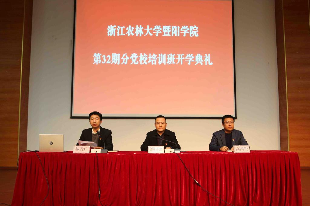 11月18日晚,学院分党校第32期培训班开学典礼在明珠报告厅举行。院党委书记潘国忠,党委副书记高国俊出席开学典礼。典礼由组织人事部负责人主持。