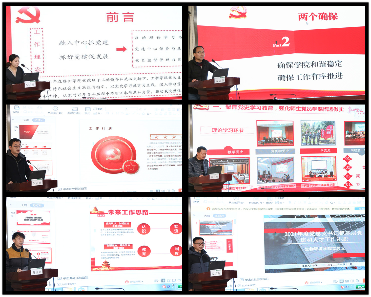 会上,6个党总支分别就基层党建工作的履职情况、组织建设、队伍建设、清廉校园建设等四个方面和落实党管人才工作责任,在人才引进、课程思政、学术活动等方面把好政治关,统筹推进各类人才队伍建设等方面进行了现场述职汇报,机关党总支作书面形式述职。