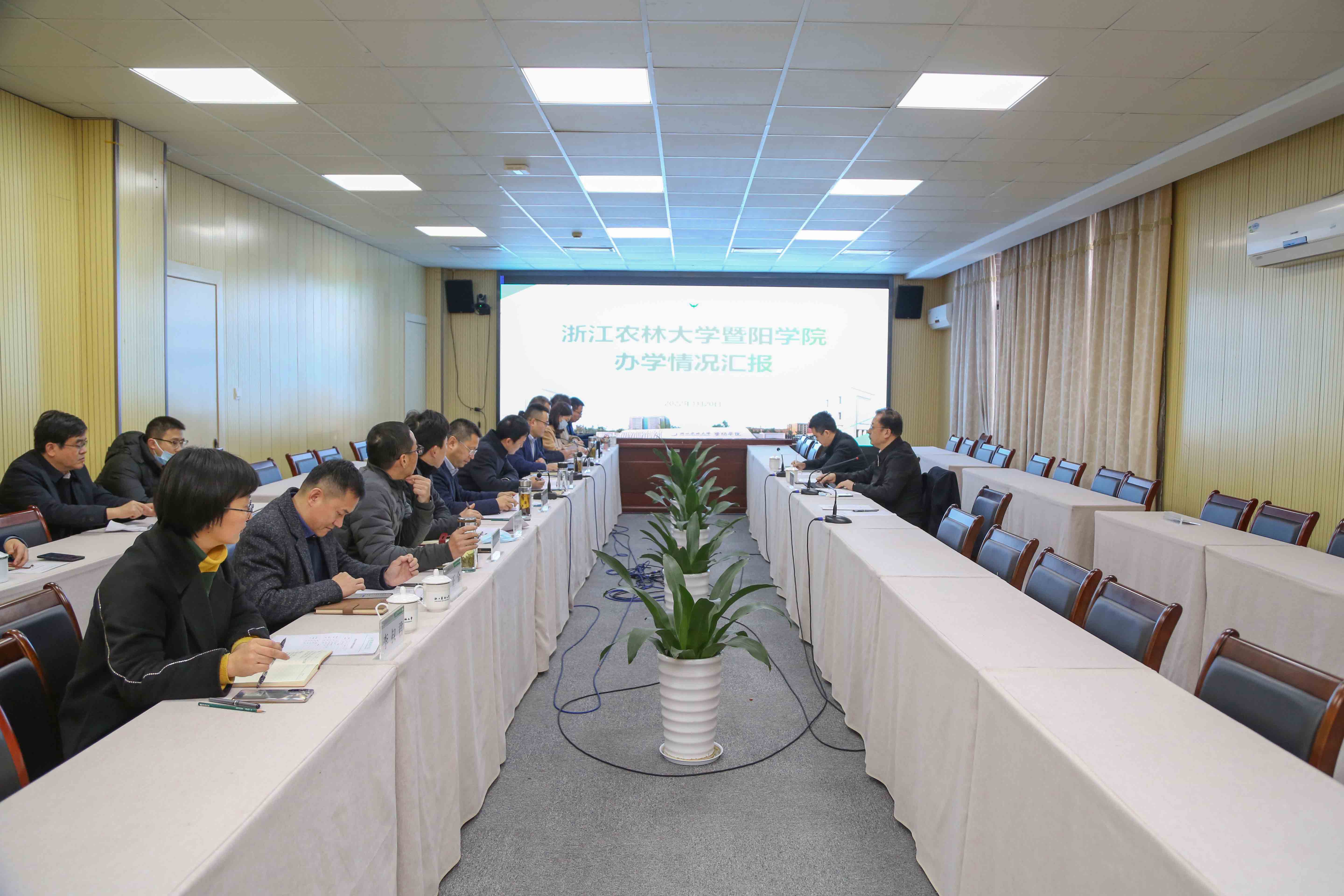 1月20日下午,绍兴市委常委王涛一行来必赢官网调研指导。绍兴市政府副秘书长马海明,诸暨市委副书记、代市长张昆仑,诸暨市副市长陈文进陪同调研指导,学院领导班子成员参加座谈会。