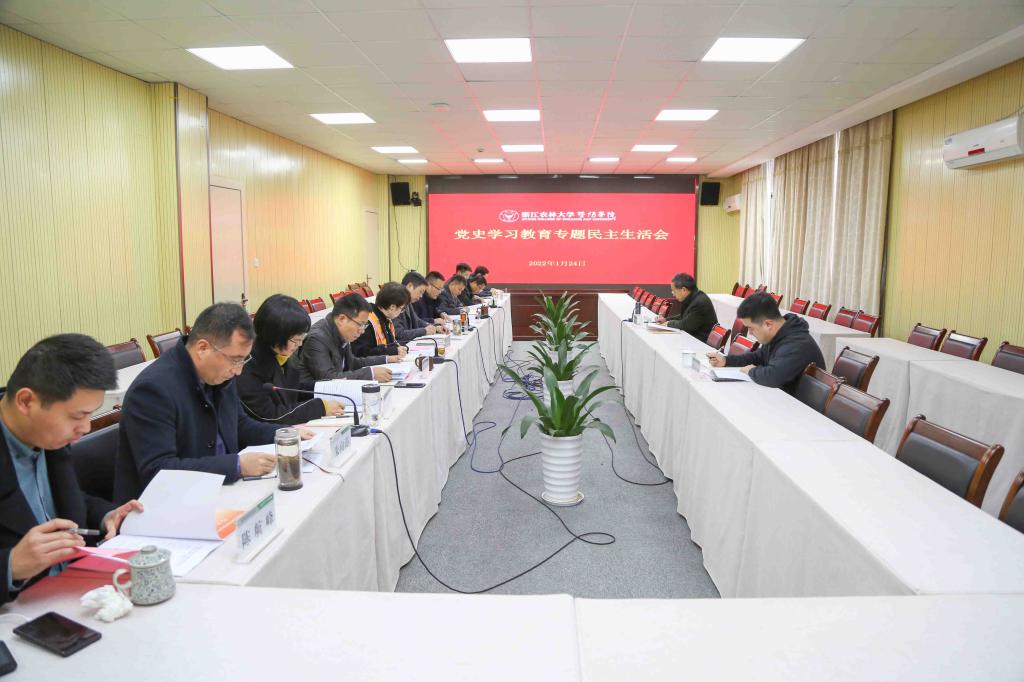 1月24日上午,学院召开党史学习教育专题民主生活会。校党委委员、副校长胡祖吉,校党委组织部主管到会指导。学院党委班子全体成员参加会议,非中共党员的院领导列席会议。会议由党委书记潘国忠主持。