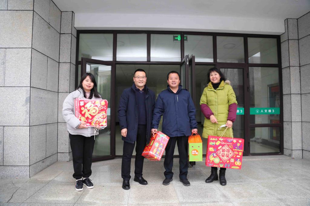 浓浓关怀,情暖人心。1月24日,学院党委书记潘国忠带队走访慰问留校教职员工,向他们送去节日问候和新春的祝福。