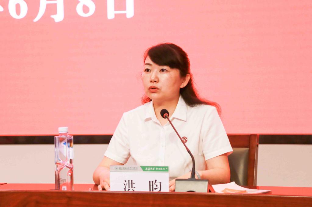 院党委书记洪昀作动员讲话。她表示,此次干部集中调整工作的意义重大,调整工作要做到不能辜负组织期待、师生期待、个人期待。同时,充分肯定了中层干部在推动学院重要工作方面取得的成绩。她强调,此次干部集中调整,既是确保学院各项事业薪火相传、承前启后的根本要求,也是持续推进学院治理体系和治理能力的战略举措,全院上下要深刻认识此次干部集中调整工作的重要性,并提出了三点意见:一是要切实提高思想站位,充分认识干部集中调整工作的重要意义。中层干部集中调整是落实党管干部原则的重要体现,是推动学院事业不断发展的需要,是加强干部队伍建设的重要举措;二是要全面加强组织领导,确保干部集中调整工作圆满完成。干部集中调整工作要严格规范工作程序、注重实干实绩实效、正确对待进退留转、严守组织纪律要求;三是要大力弘扬担当精神,全面推动学院工作再上新台阶。希望全体中层干部要强化政治意识,提升政治素养;强化协同意识,形成发展合力;强化资源意识,激活发展潜力。全院上下要始终树牢“一盘棋”思想,凝心聚力,蹄疾步稳,推动学院各项事业高质量发展。