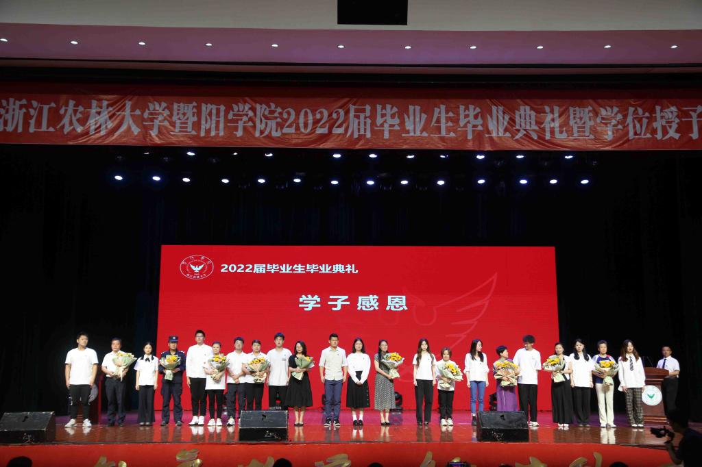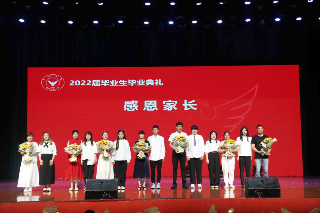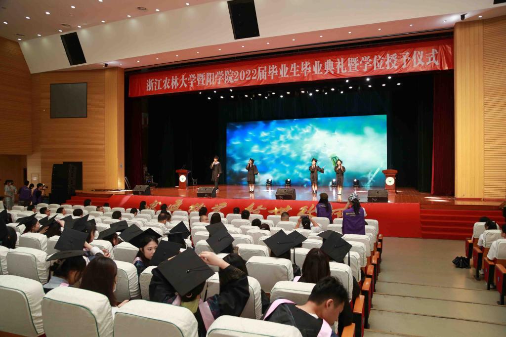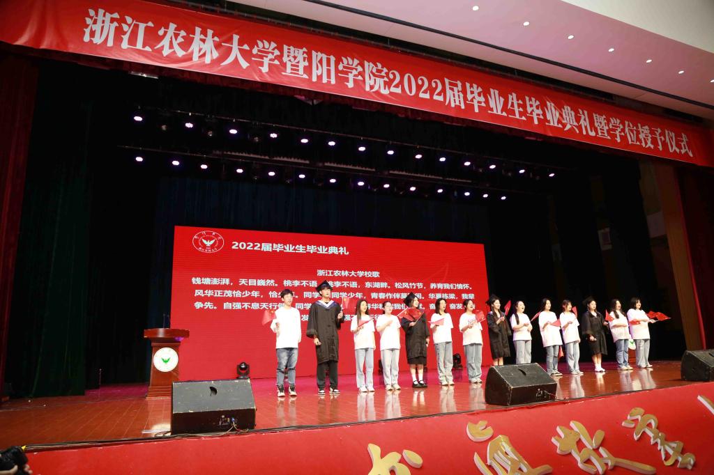 典礼最后,四位毕业生代表合唱《如果有来生》,心怀感恩,憧憬未来,仪式在嘹亮的浙江农林大学校歌中落下帷幕。