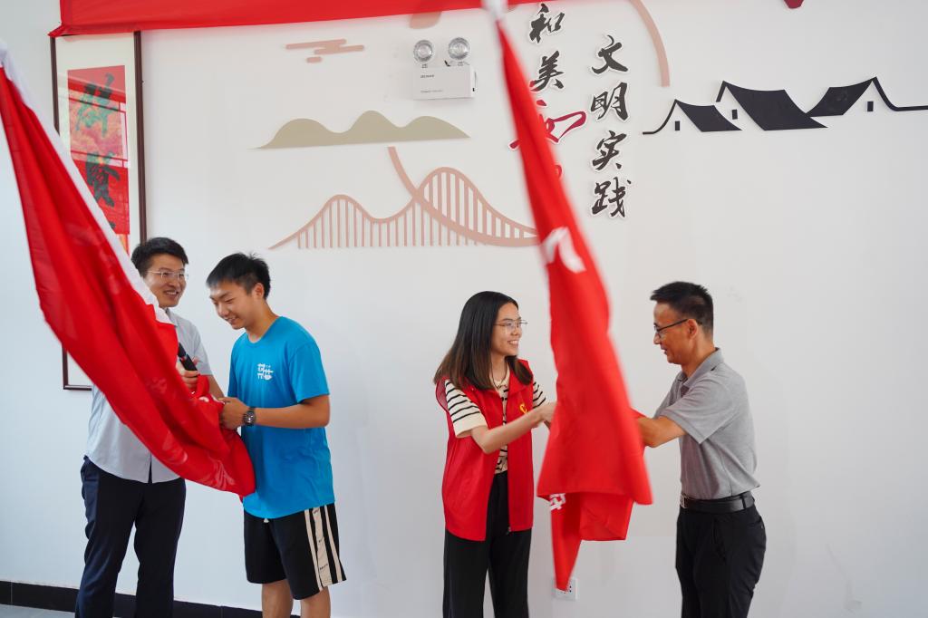 走访期间,洪昀一行参加了西皇村爱心食堂开业典礼。五泄镇党委副书记陈官珂,西皇村各村干部,工程技术学院社会实践团师生参加仪式。仪式上,洪昀和陈官珂共同为爱心食堂揭牌。活动现场,工程技术学院与五泄镇人民政府达成志愿者联盟,现场完成了授旗仪式。