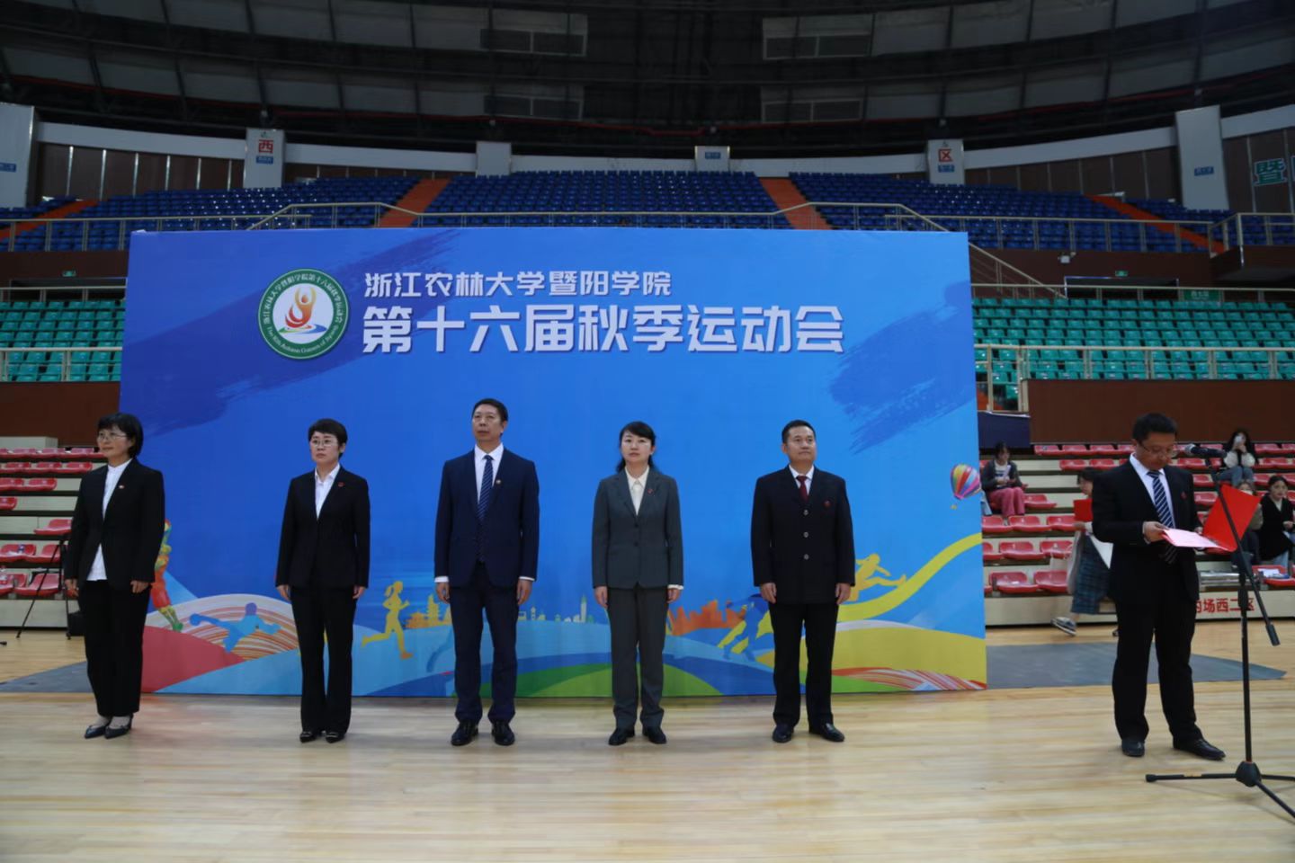 11月4日下午学院领导徐光辉、洪昀、李文莉、吴正金、高国俊、李叔君出席运动会闭幕式。