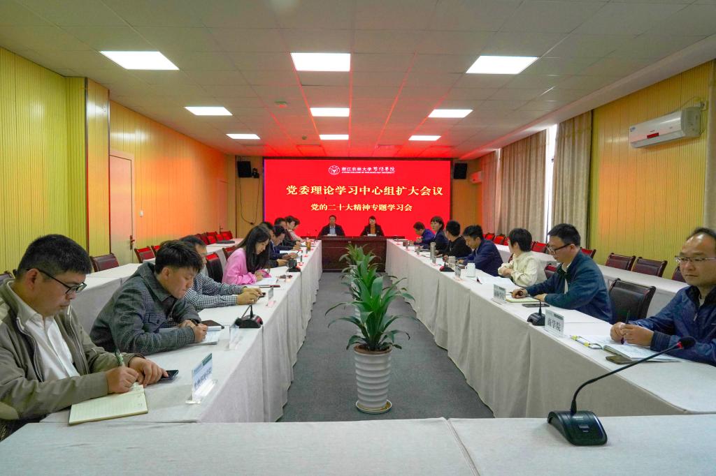 11月9日,学院党委书记洪昀主持召开学院党委理论学习中心组扩大会议,深入学习党的二十大精神。学院领导班子、党委理论学习中心组成员、各党总支负责人参加会议。院长徐光辉、副院长金松恒列席会议。
