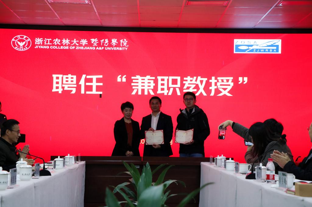 李文莉分别为诸暨市同学会会员代表颁发兼职教授及创业导师聘书。