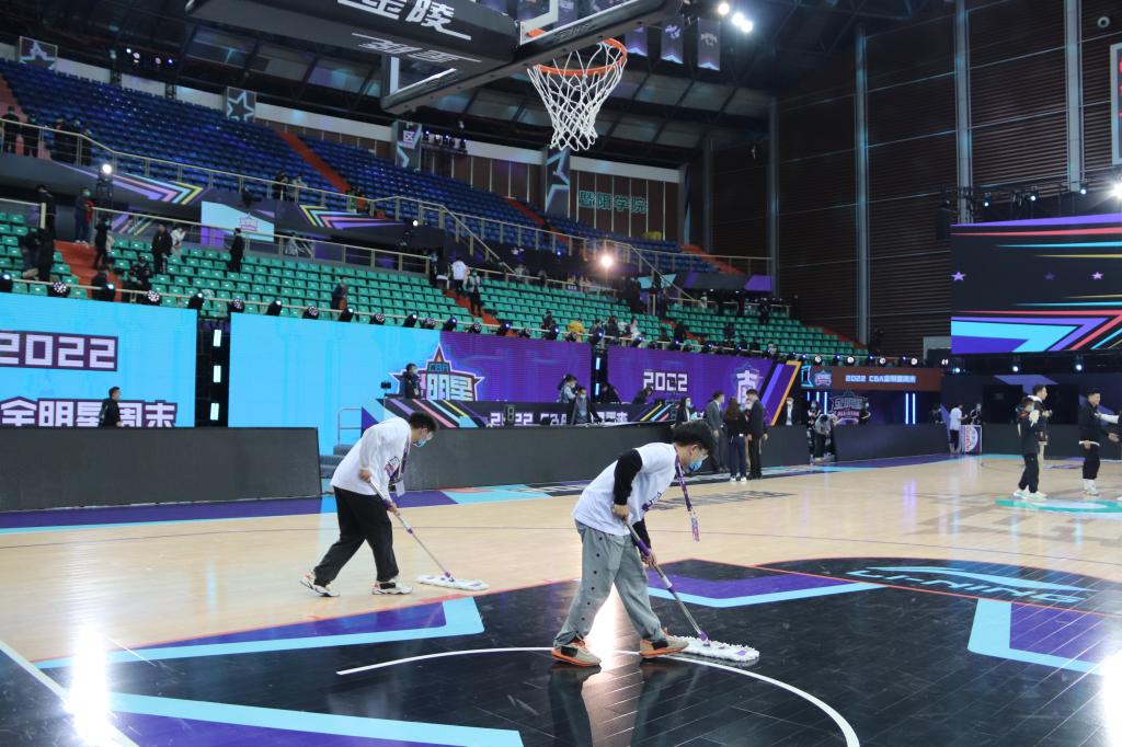 这是全明星周末首次由县级市承办,同时也是CBA联赛连续三个赛季在诸暨举行。学院领导高度重视赛事保障工作,主动加强与诸暨市人民政府联系,召开CBA赛事筹备专题工作推进会议,落实场馆保障与服务工作。学院着力做好场馆设备升级、志愿服务、疫情防控和校园平安稳定工作。体育中心对篮球馆进行全面升级维护,积极做好智能灯光系统升级,网络传输办理,赛事物资采购发放,灯光、大屏、音响、中央空调检修及现场技术维护等各项工作,配合做好赛事主题布置等工作。除落实场馆防疫消杀措施、观赛人员严格按照疫情防控要求进场外,对比赛场馆进行了防护隔离。学工部·团委招募180名学生志愿者,积极做好志愿服务工作,公共保障部、后勤服务部等部门做好相关配套服务工作。学院全员全时全力确保全明星周末活动安全、有序、精彩、圆满。