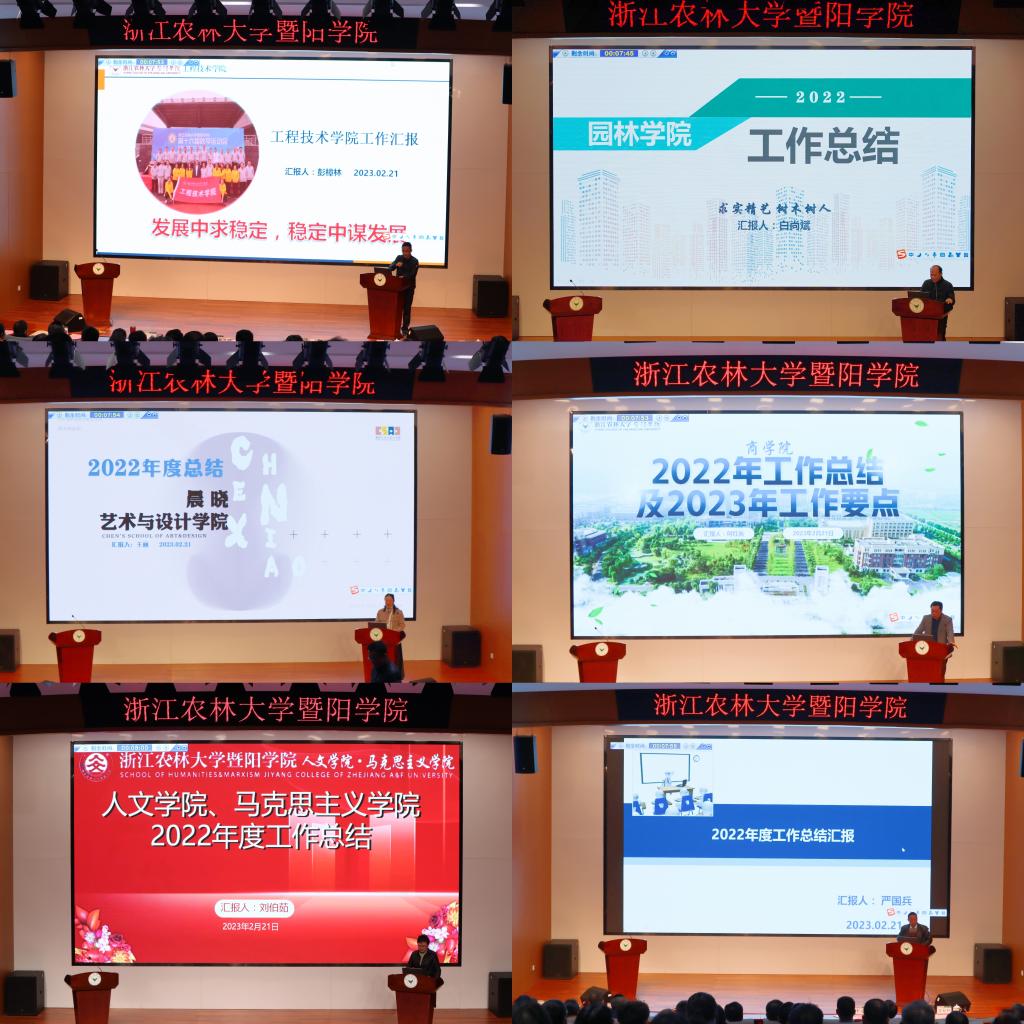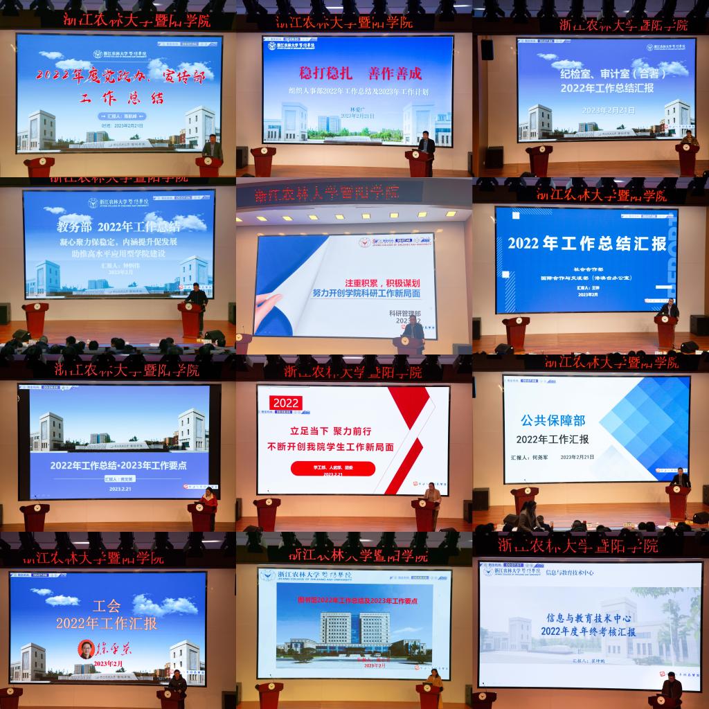 会上,7个教学单位,13个职能部门和2个附属单位就2022年度重点工作完成情况、亮点工作及2023年工作要点等方面进行了现场汇报。