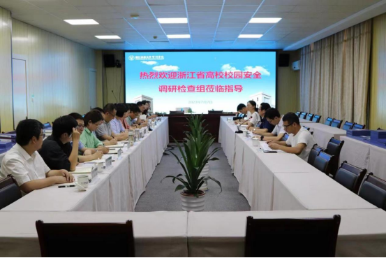7月7日下午,浙江省高校校园安全第10调研检查组组长、嘉兴职业技术学院副校长汪明华一行5人莅临必赢官网调研检查校园安全工作。学院党委书记洪昀、党委副书记高国俊、副院长李叔君,学生心理健康教育工作领导小组成员,公共保障部、实验中心、后勤服务部负责人参加见面会。