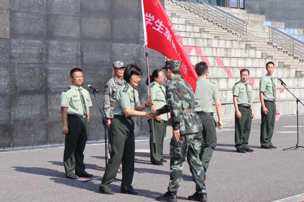 会上,军训团副团长耿宇宣读军训建制名单,军训团团长李叔君为各连授旗。