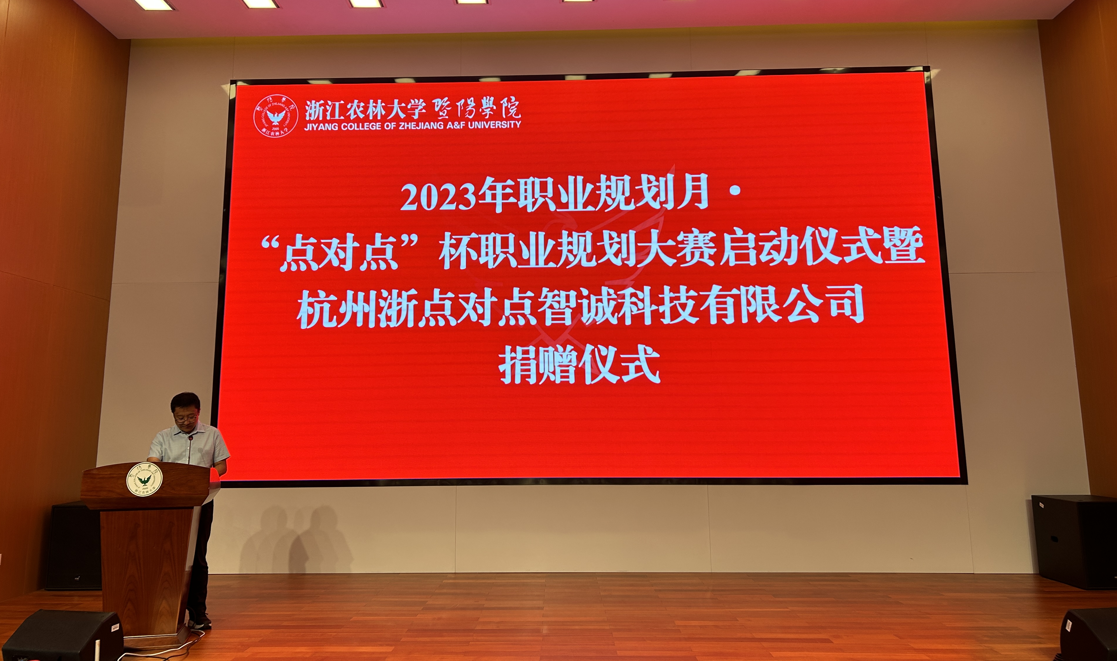学工部负责人详细介绍了“点亮未来,勇往‘职’前”2023年职业规划月系列活动。启动仪式上,学院获杭州浙点对点智诚科技有限公司捐赠教育基金20万,作为校外奖助学金,以支持学生职业生涯规划教育。徐光辉向杭州浙点对点智诚科技有限公司颁发了捐赠证书和校企合作牌匾。捐赠仪式后,慕亚平董事长为在座师生开展了大学生职业生涯规划的讲座。