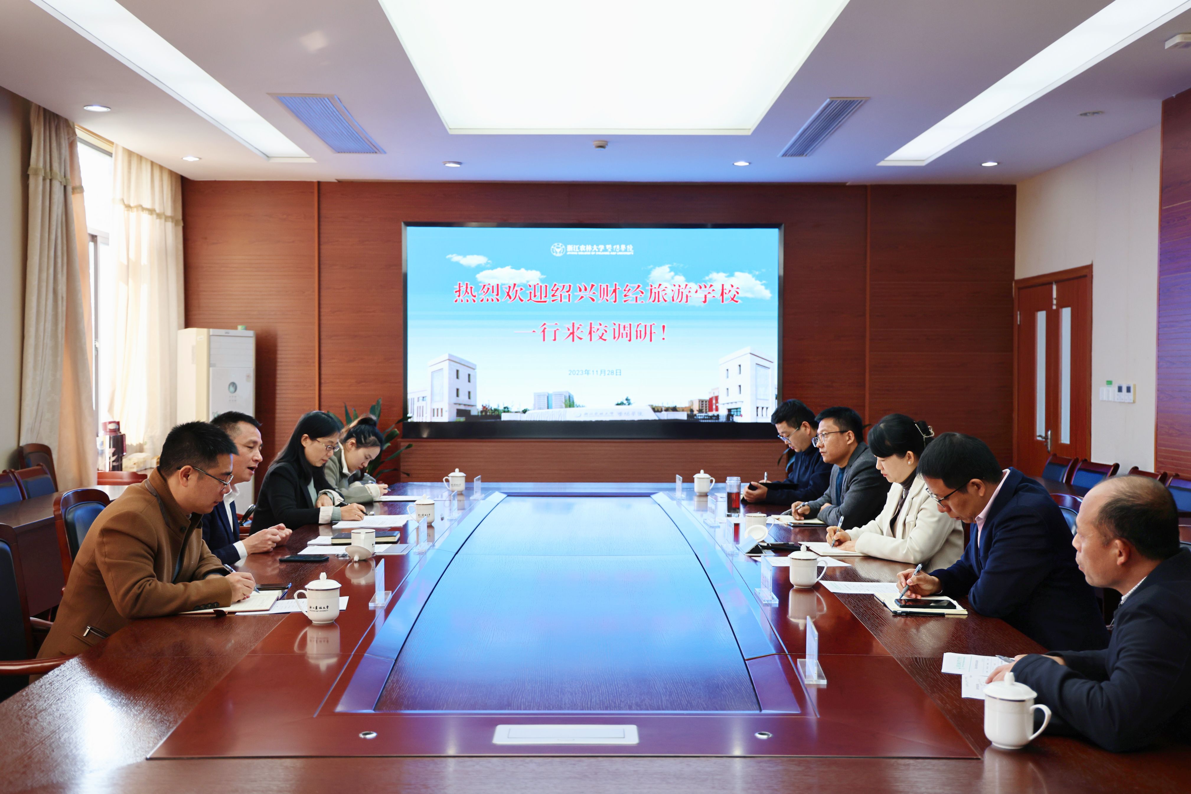 11月28日,绍兴财经旅游学校党委书记鲁伟民一行来院调研交流。学院党委书记洪昀、副院长金松恒、党委副书记高国俊及相关职能部门负责人陪同调研。