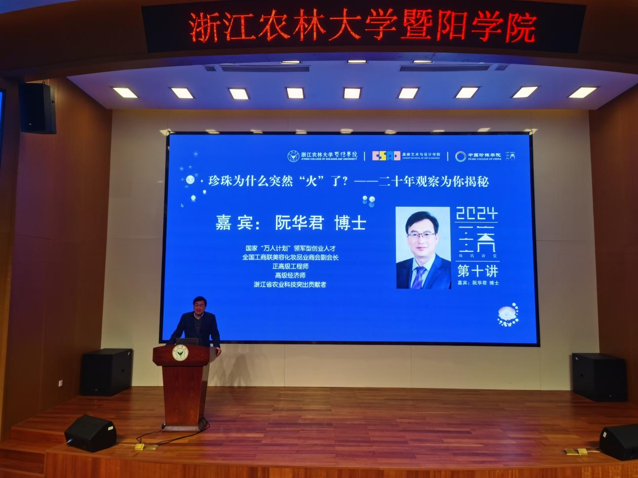 仪式后,浙江长生鸟健康科技股份有限公司董事长、复旦大学经济学博士、国家级人才、高级经济师阮华君作“珍珠为什么突然‘火’了”主题演讲。讲座中,阮华君向同学们深度剖析了珍珠火爆的四大原因以及珍珠产业发展趋势。产业班学员与阮华君进行了积极互动。