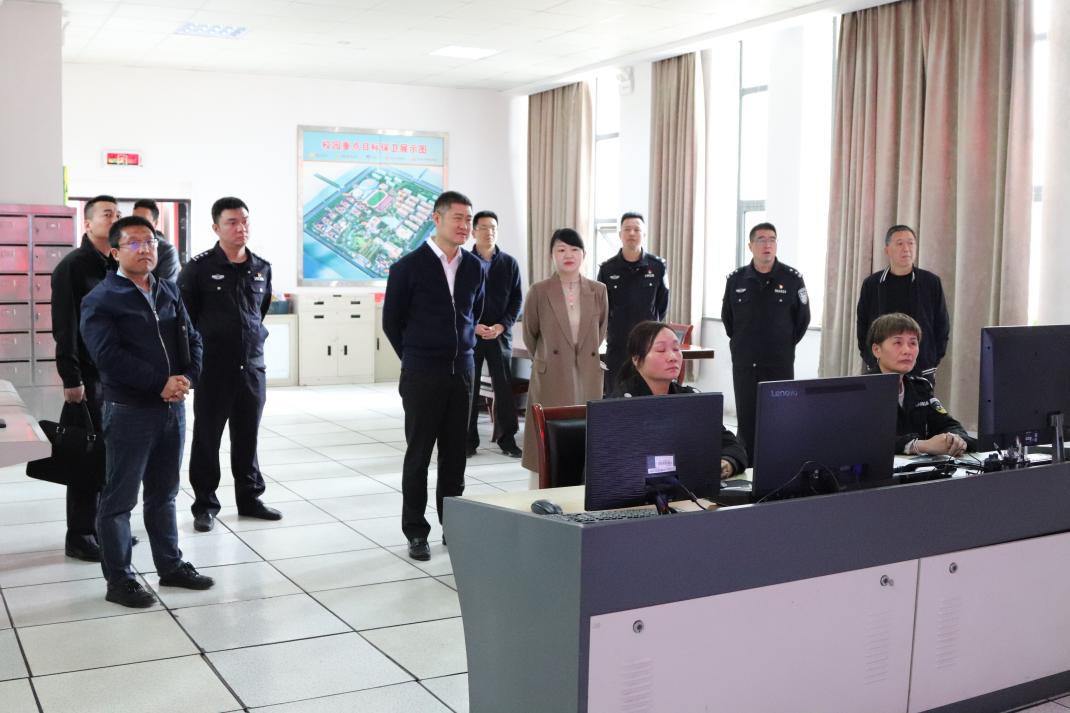 谢琦一行实地走访了学院南大门、警务站、监控室、电动自行车充电场所和东二门外周边区域。