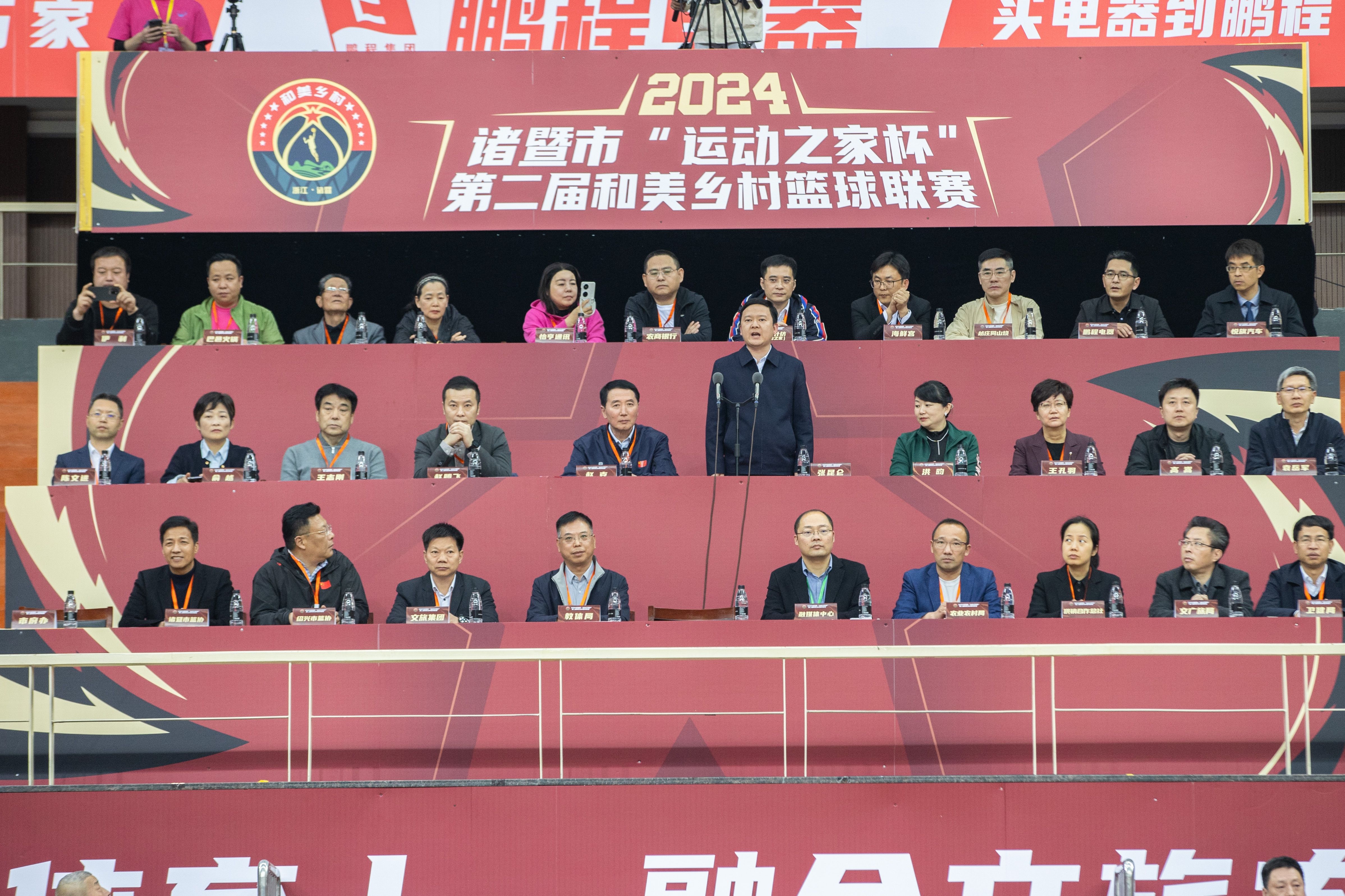 4月7日晚,由诸暨市人民政府主办的2024第二届和美乡村篮球联赛(村BA)揭幕赛在必赢官网体育中心篮球馆盛大开幕。省篮球协会主席赵克,诸暨市委副书记、市长张昆仑,绍兴市体育局党组书记、局长赵腾飞,学院党委书记洪昀,省篮球协会副主席、秘书长王志刚,诸暨市委常委、宣传部部长王孔羽,市人大常委会副主任俞越,副市长高嵩、陈文进,市政协副主席袁岳军及相关单位负责人出席开幕活动。