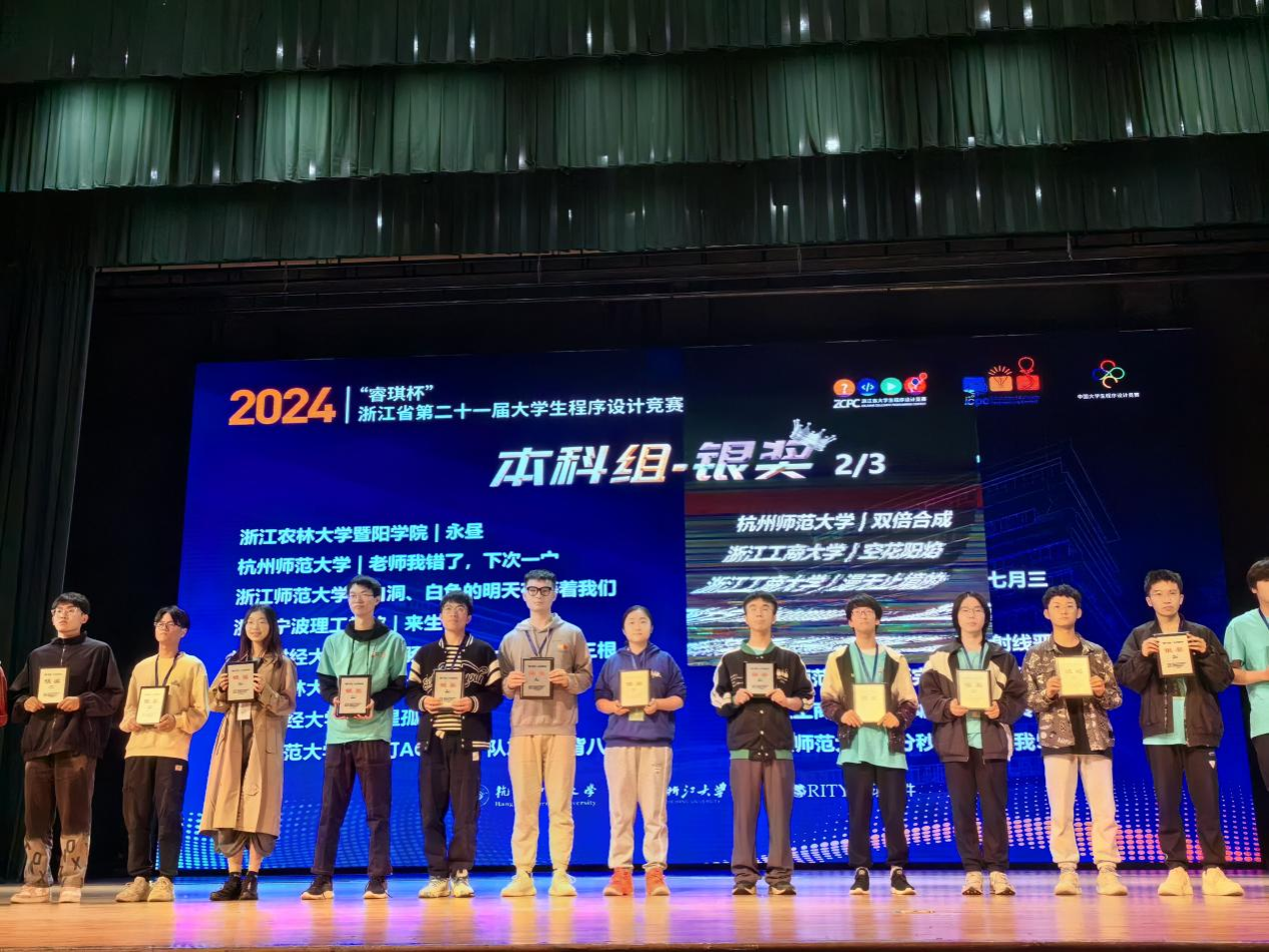 4月13日,“睿琪杯”浙江省第二十一届大学生程序设计竞赛在杭州师范大学落下帷幕,学院参赛学生在指导教师带领下取得一银一铜的历史最好成绩。