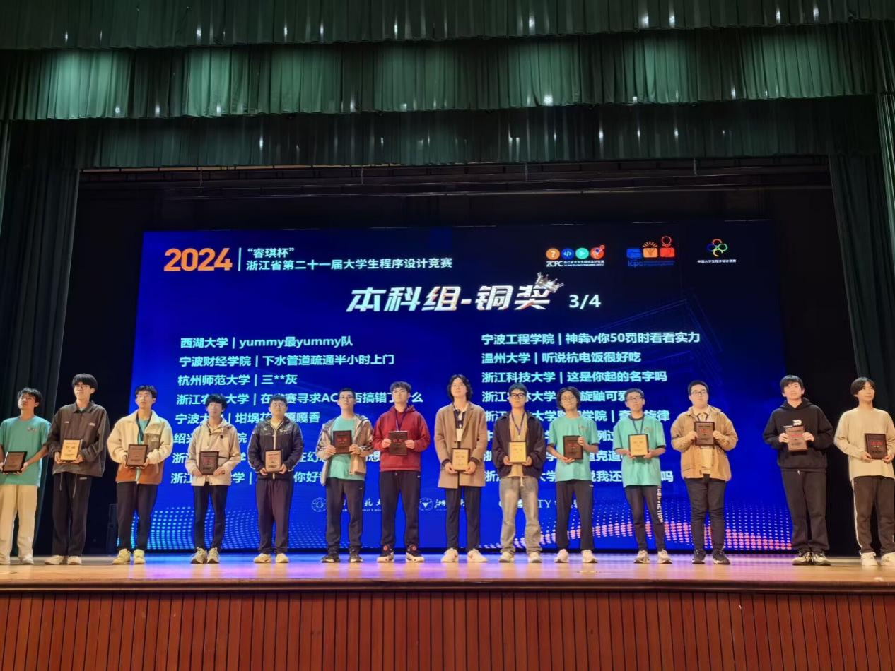 必赢官网学子在“睿琪杯”浙江省第二十一届大学生程序设计竞赛中取得历史最好成绩
