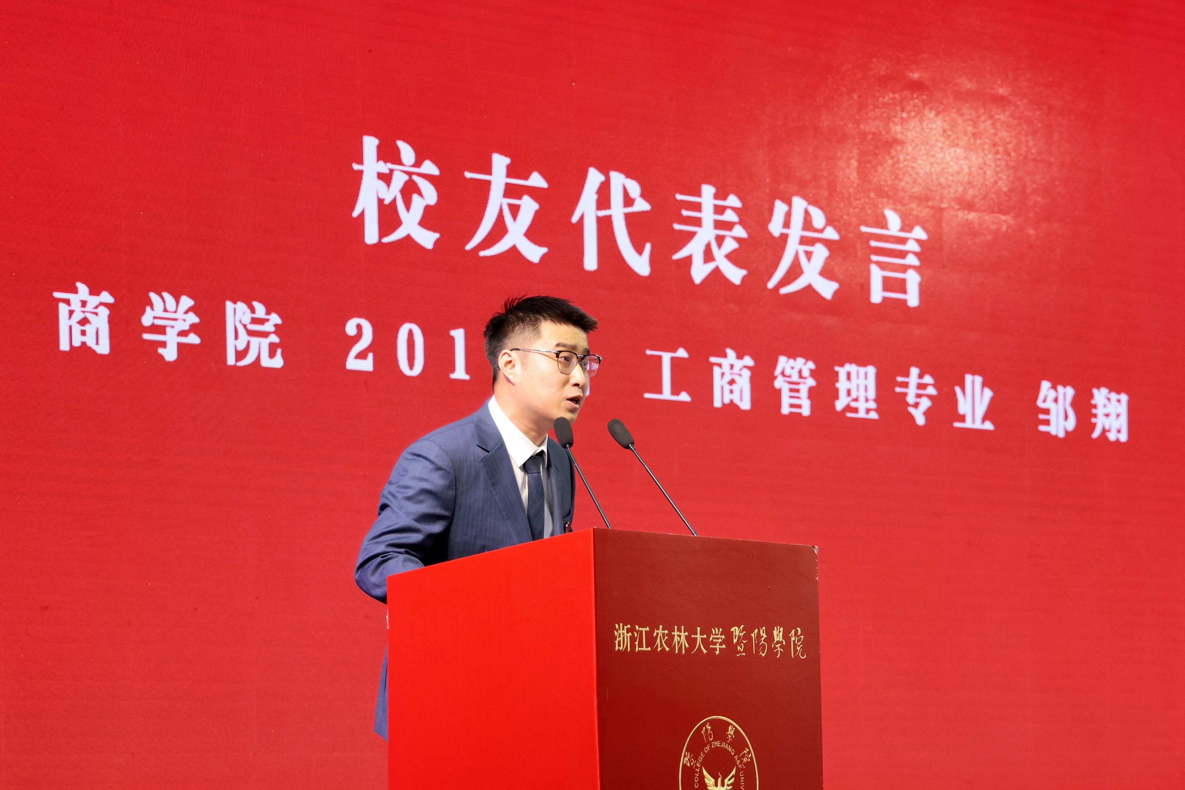 毕业生代表施成哲、校友代表邹翔、家长代表发表感言。