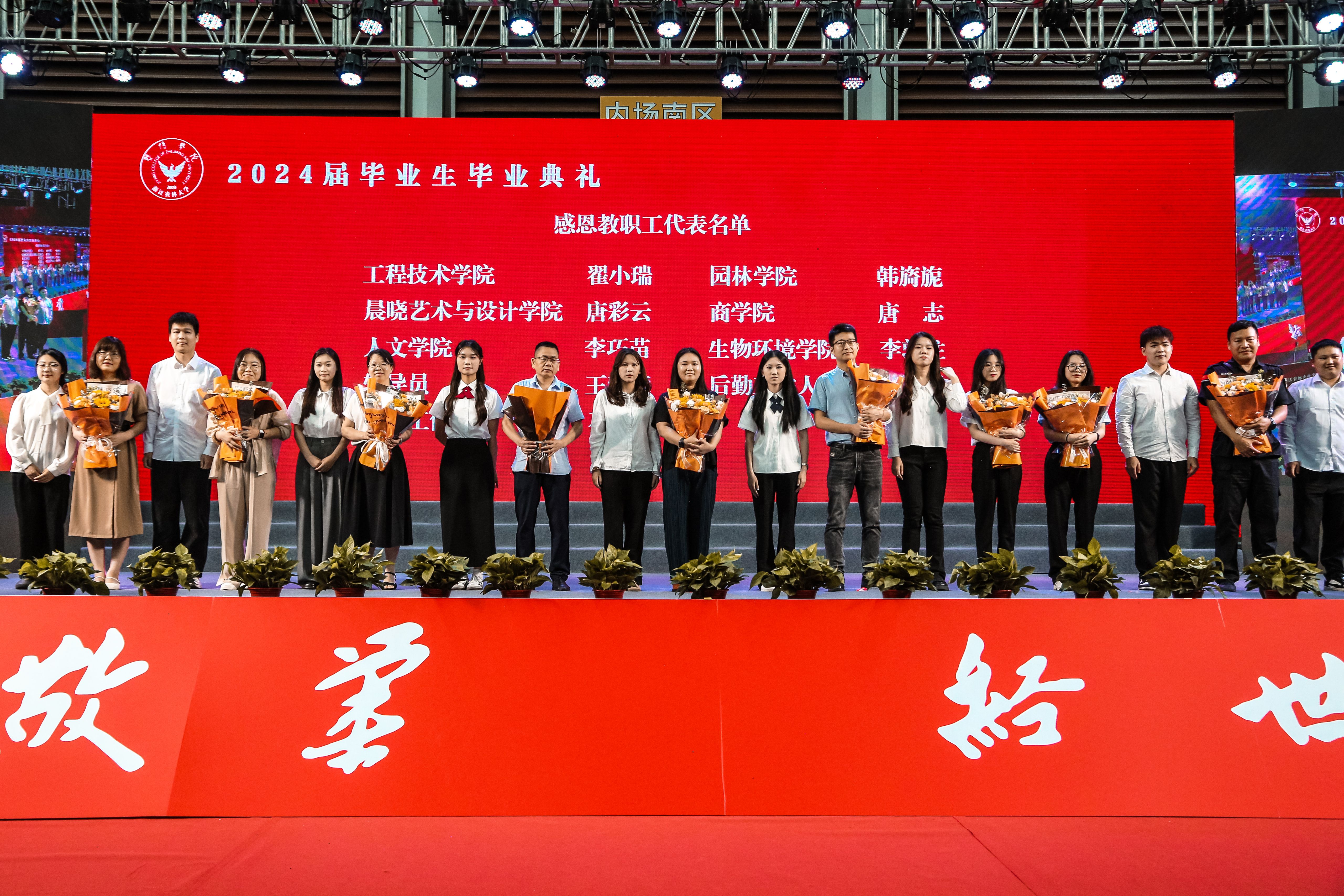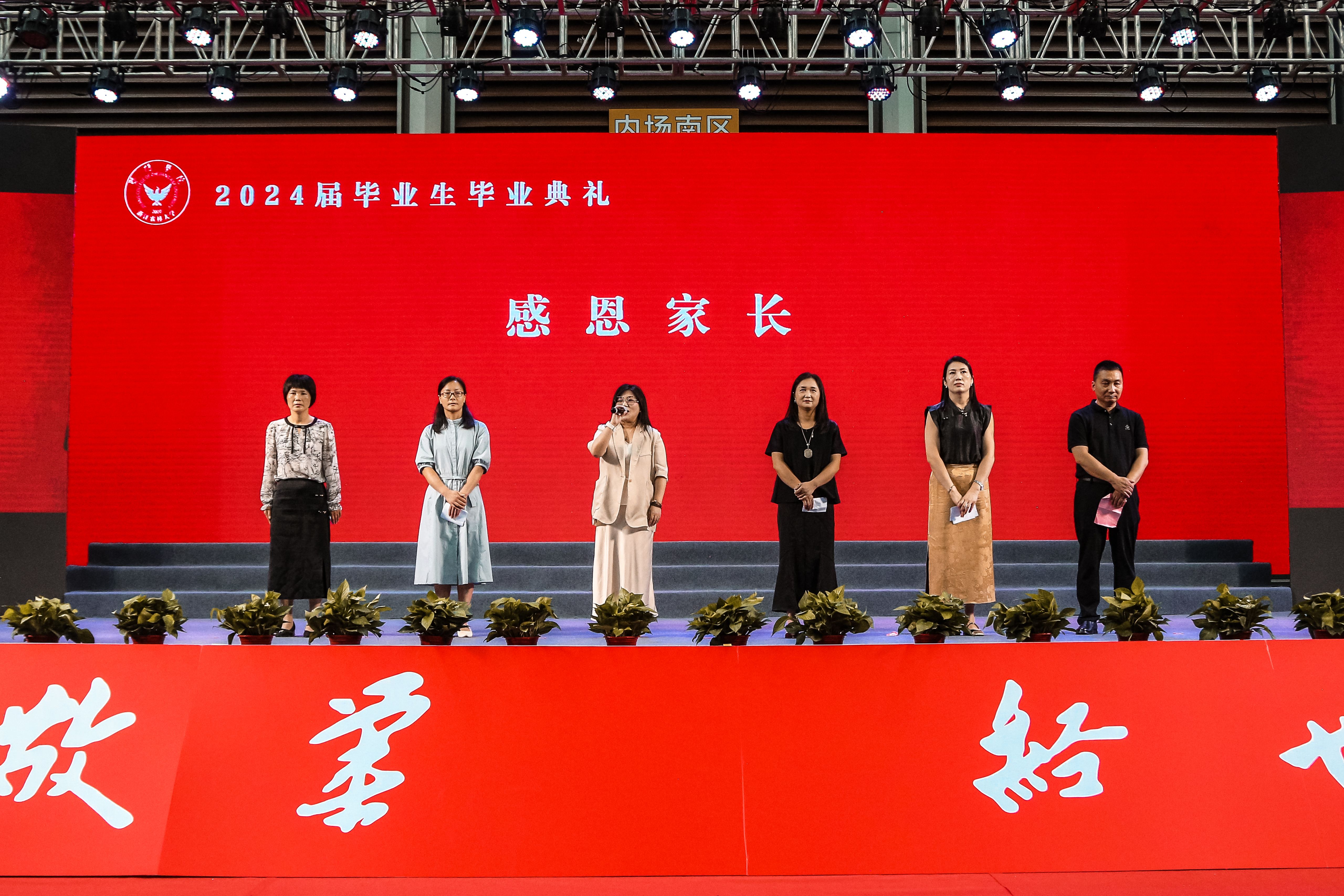 毕业生代表还向学院教师、保安、后勤阿姨和家长代表送上鲜花,表达深深的感激之情。