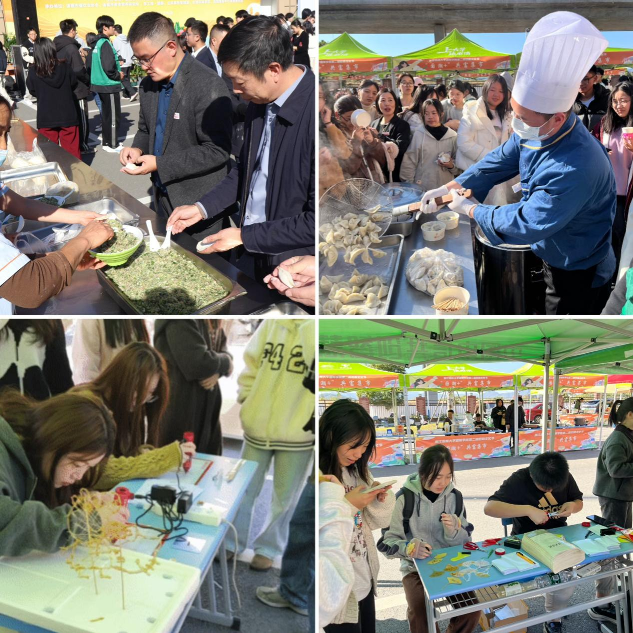 “民俗+”千人饺子宴,与师生共赴一场传统饮食文化之旅。邀请来自不同地区的学生代表现场包饺子、品饺子,从北方的大肚饺到南方的柳叶饺,师生在形态各异的饺子和不同饺子文化中,增进了交流,共同感受了中国传统饮食文化的魅力。