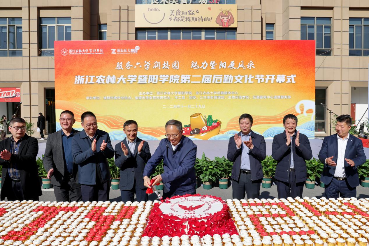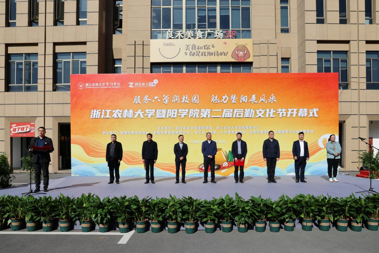 学院及后勤中心相关领导,诸暨市餐饮业协会、学院学工部、生物环境学院相关负责人,诸暨服务部员工代表、学生代表等1000余人参加开幕式。
