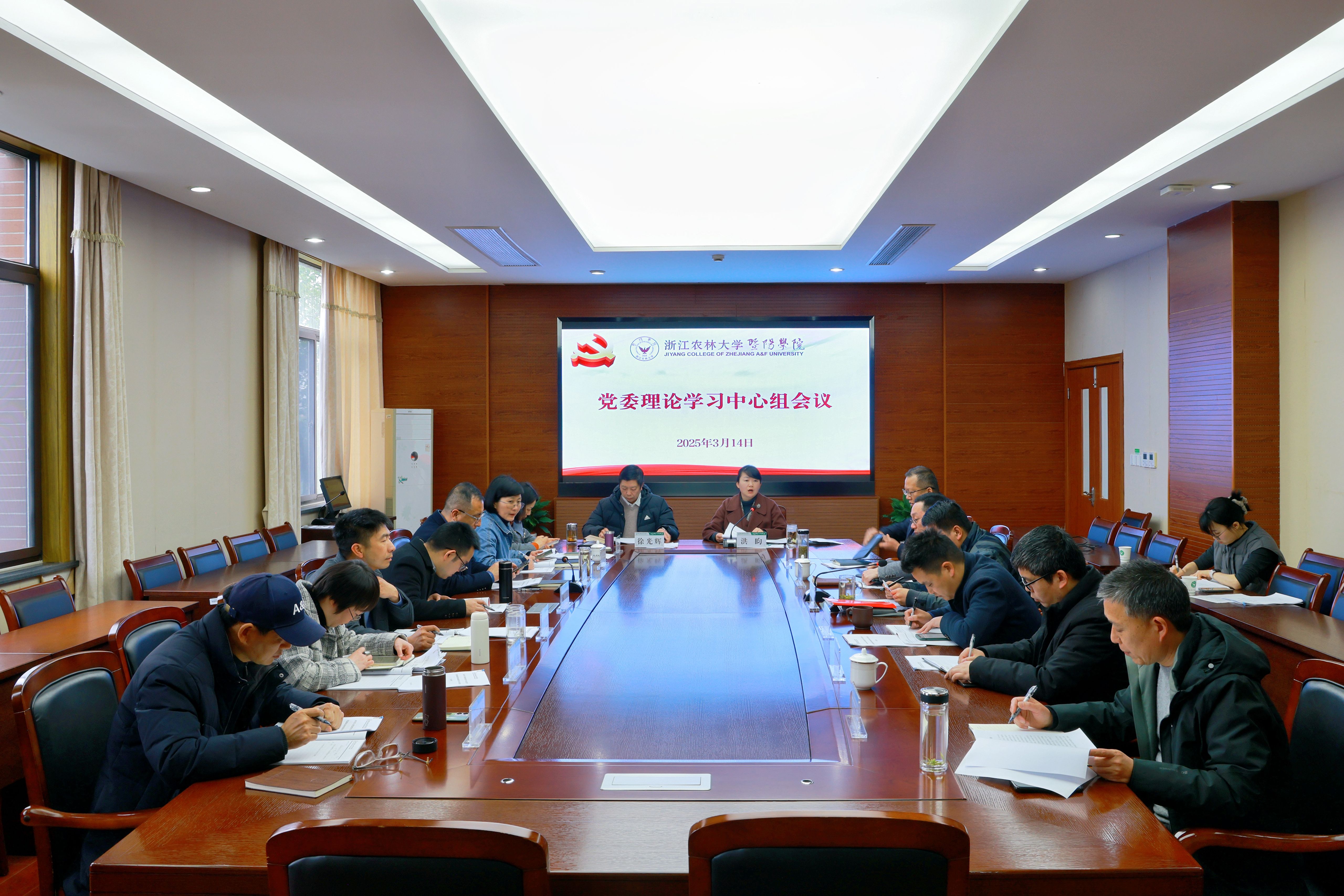 3月14日,学院召开党委理论学习中心组会议,专题学习习近平总书记重要指示批示和回信精神,学习贯彻2025年中央一号文件精神,学习传达《教育强国建设规划纲要(2024—2035年)》、浙江省新春第一会、浙江省教育强省建设大会、全省高校党的建设工作会议精神。学院党委书记洪昀主持会议并讲话。