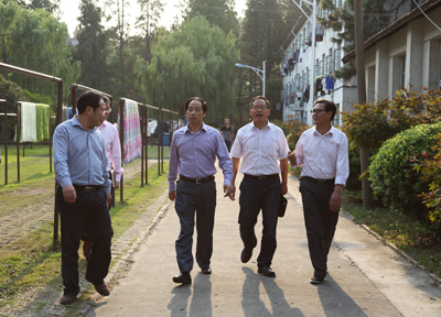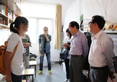 周国模校长还就迁址办学后图书馆、后勤、保卫的管理模式提出了指导意见,并在学院领导和相关职能部门负责人的陪同下深入学生寝室与同学们就学习、生活及文明寝室建设相关情况进行了亲切交流。