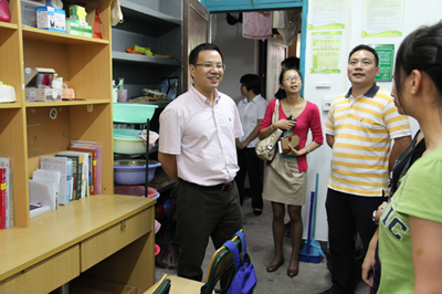 在走访学生寝室过程中,余杰副书记向同学们表达了中秋佳节的良好祝愿,详细询问了同学们在学校学习、生活等情况,并就文明寝室建设活动的重要意义与同学们进行了深入交流。他强调,寝室生活是大学生活的重要组成部分,文明寝室建设工作要在保持寝室干净、整洁的基础上,注重寝室的美化,突出文明寝室的文化内涵,他希望同学们要积极主动的搞好寝室卫生,坚持不懈,形成良好的生活习惯,为学习创造良好的生活条件。