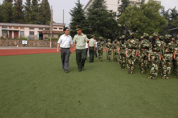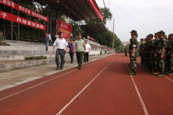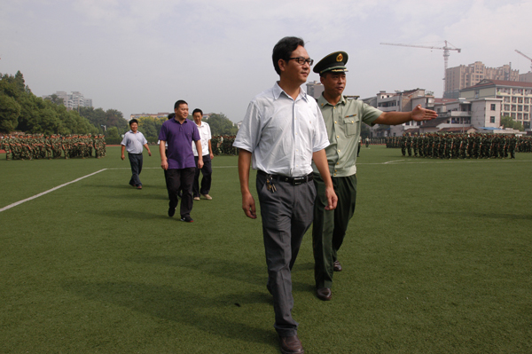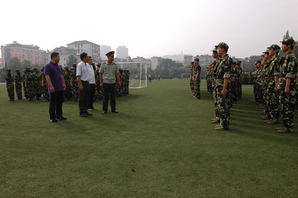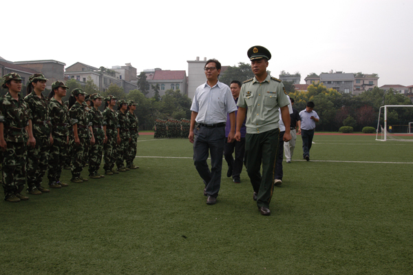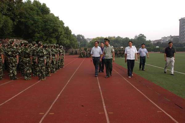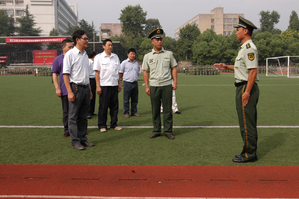 9月7日上午,学院党委书记杨黎明、副院长修树东、党委副书记哀建国等在军训团副团长缪卫华的陪同下,到军训场亲切看望军训新生。