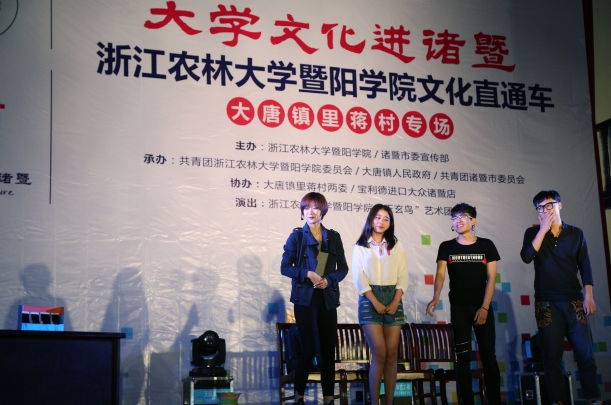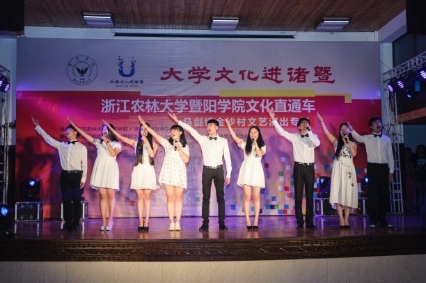 让诸暨人民看到暨阳学子活力身影、听到暨阳学子嘹亮声音,5月9日、31日,“大学文化进诸暨”——必赢766net手机版文化直通车先后开进了大唐镇里蒋村和马剑镇金沙村文化礼堂,2000余名当地干部群众在家门口观看了演出。