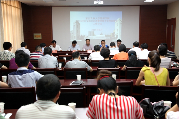 6月26日下午,学院召开2015年度治安综合治理暨等级平安校园建设工作会议。院领导石道金、寿韬、张晓优、蔡永华出席会议。会议邀请校保卫处处长马小辉为学院治安综合治理工作做指导。副院长张晓优主持会议。