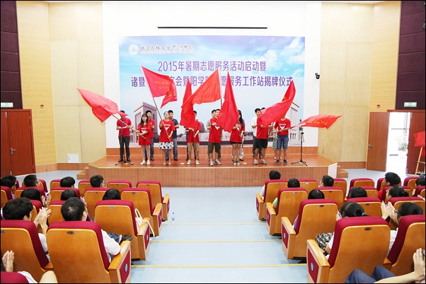 7月2日上午,2015年暑期志愿服务活动启动暨诸暨市红十字会必赢766net手机版“志愿服务工作站”揭牌仪式在图书馆报告厅举行。学院大学生暑期社会实践活动领导小组成员,诸暨市红十字会执委会副主任傅益江出席仪式并为社会实践团队授旗。各分团委书记以及暑期社会实践立项团队师生代表参加了活动。