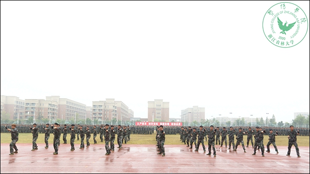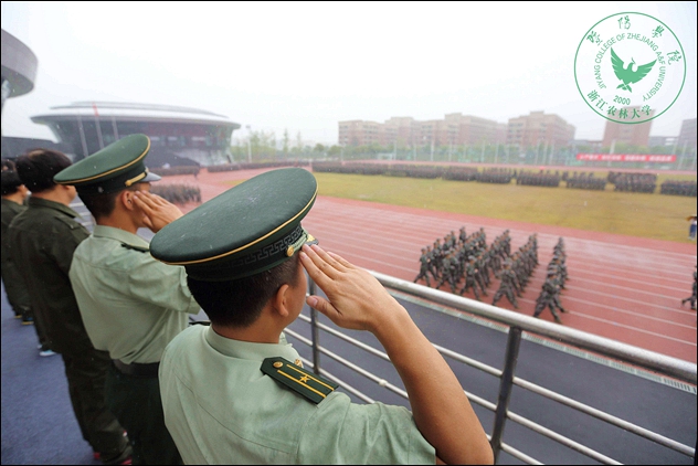 副院长李文莉,党委副书记、军训团政委蔡永华,武警杭州士官学校教导员、军训团团长胡国富,区队长、军训团参谋长刘兆欢,军训团副政委、各营教导员出席军训总结大会,在雨中见证同学们的军训成长。大会由军训团副政委、学工部、团委负责人主持。