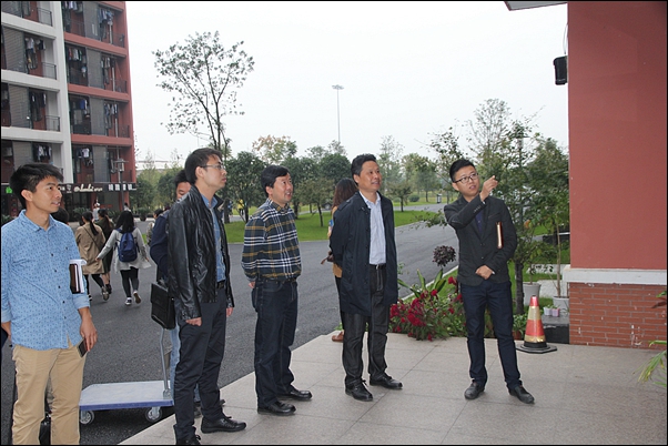 随后,考察组一行在杭州商学院党委书记袁金祥,副院长章晓乐以及学工部、团委负责人的陪同下参观了学生公寓。